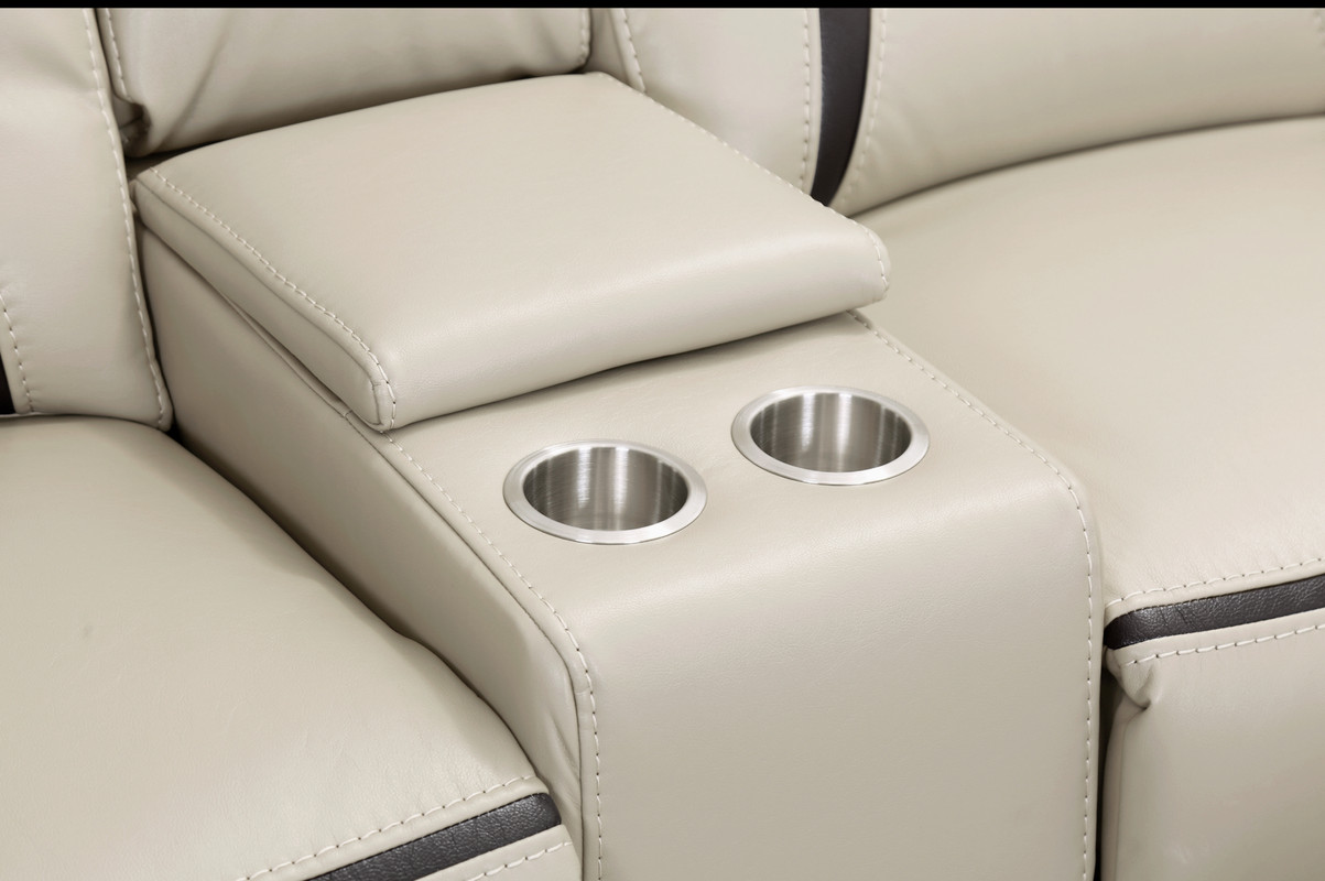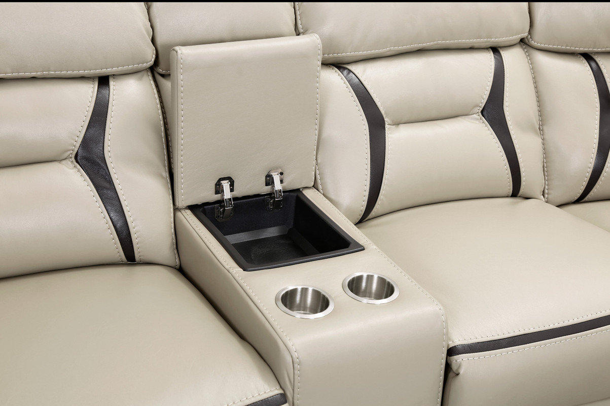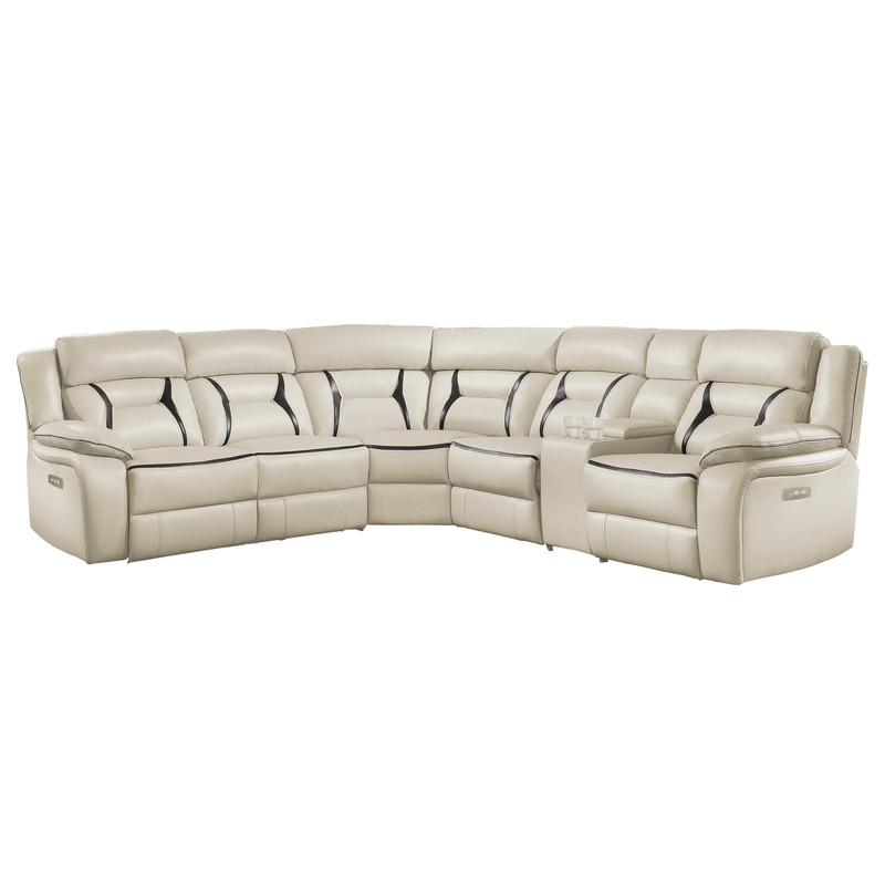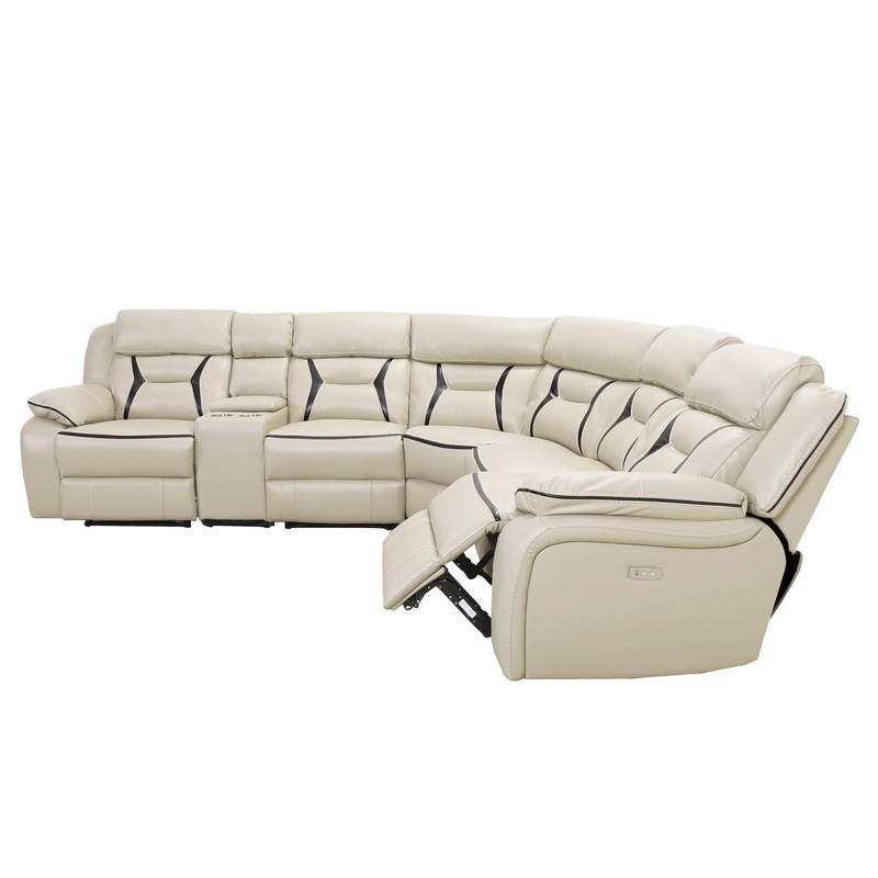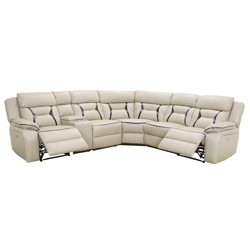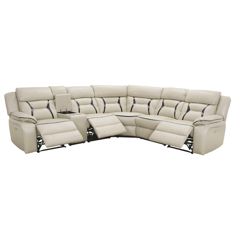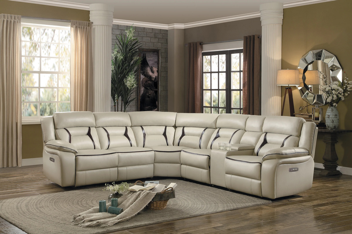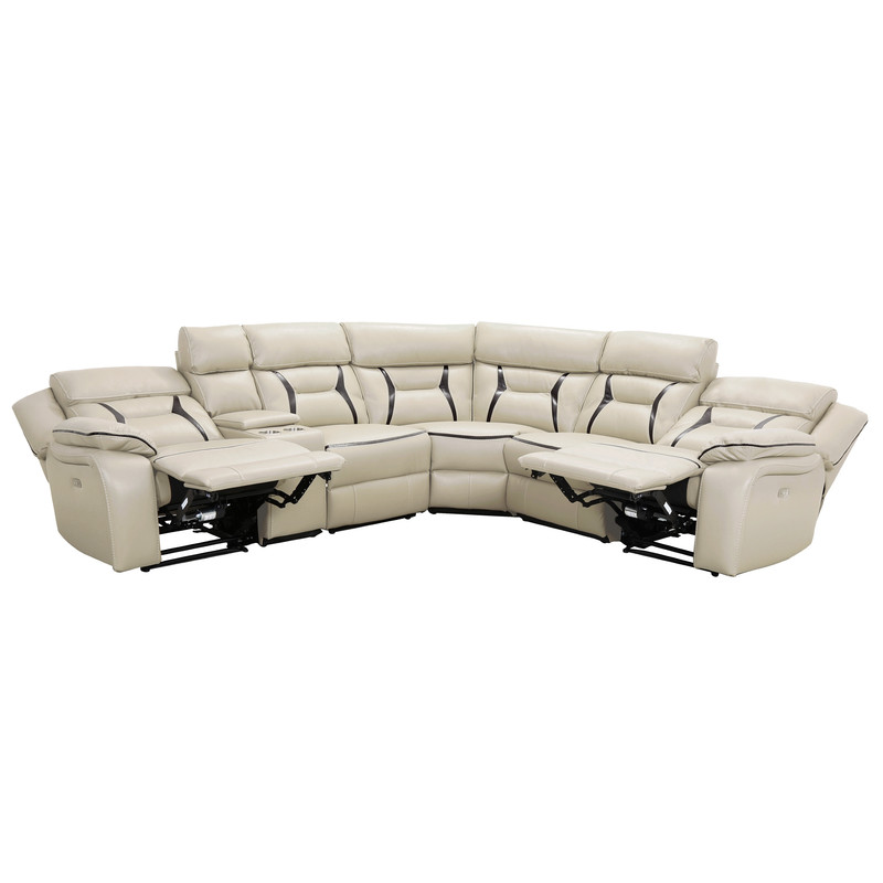 Beige Leather Gel Power Reclining Sectional