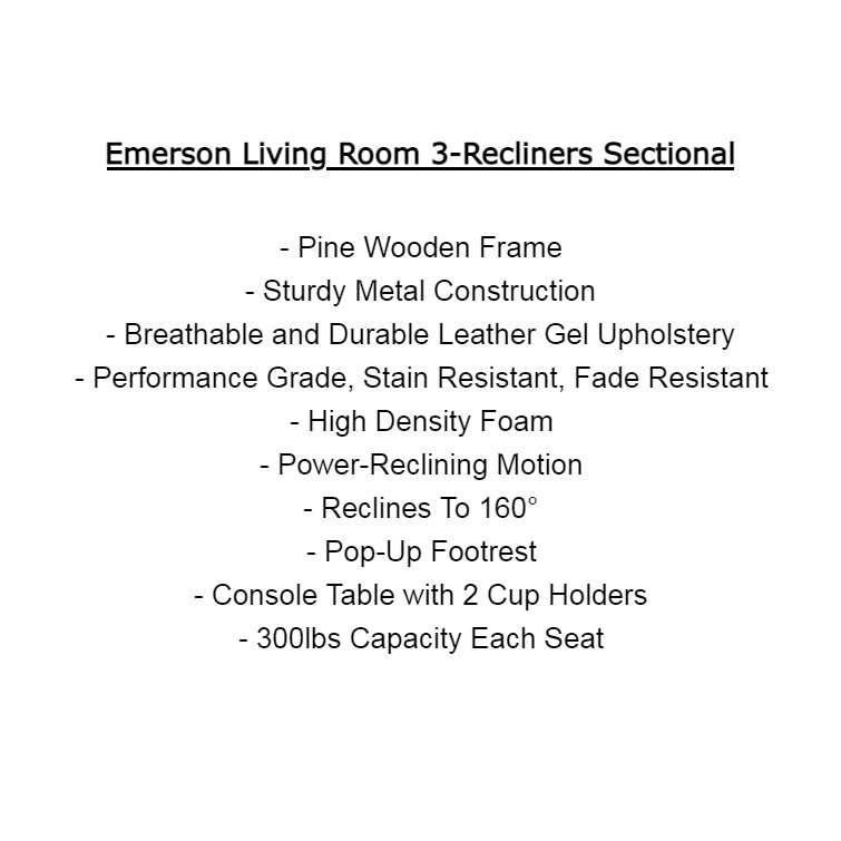 💺 Elevate Your Comfort with the Emerson Power Reclining Sectional! Experience luxury and relaxation in style with this premium beige leather gel sectional designed for ultimate comfort. This spacious 6-piece set offers generous seating for up to 5 adults, featuring contoured memory foam cushioning for lumbar support and a cozy design enhanced by dark brown accents.✨ Why You Need It - This sectional not only provides a chic and modern look for your living space but also solves several common problems:- Comfort: The high-density foam filling ensures you sink into a cloud of relaxation.- Convenience: Built-in cupholders and console storage keep everything you need at your fingertips.- Connectivity: USB ports allow you to charge your devices while you unwind.💖 Why You’ll Love It - Customers adore this sectional for its unique benefits:- Stylish Design: The premium leather gel upholstery combines aesthetics with durability.- Perfect Fit: A versatile layout with multiple pieces tailored for your space.- Easy to Use: With power reclining features, you can effortlessly find your perfect lounging position.🛋️ How to Use It - Simply press the button on the side of your desired seat to recline effortlessly. Adjust as needed for your most comfortable position!✅ Guaranteed Satisfaction - Enjoy peace of mind with our 30-day return policy. Elevate your space today and become part of our snooze crew! Order now and treat yourself to the best living experience ever!
