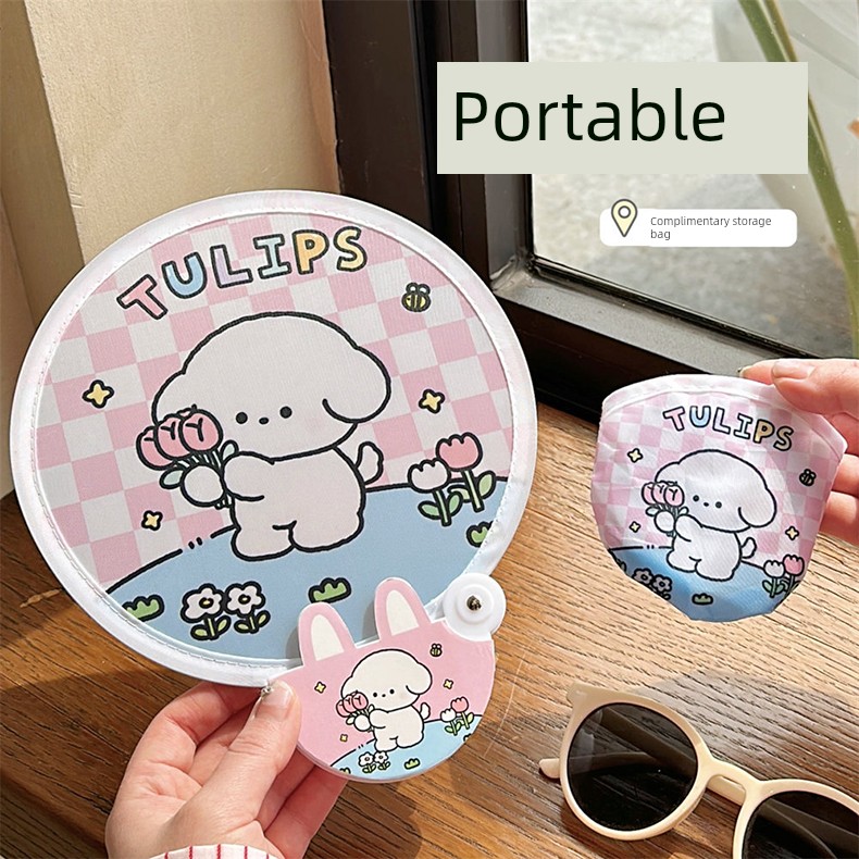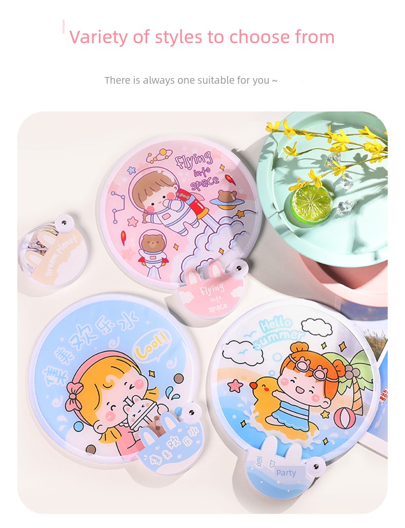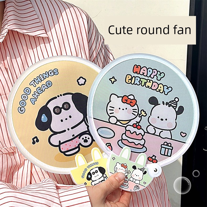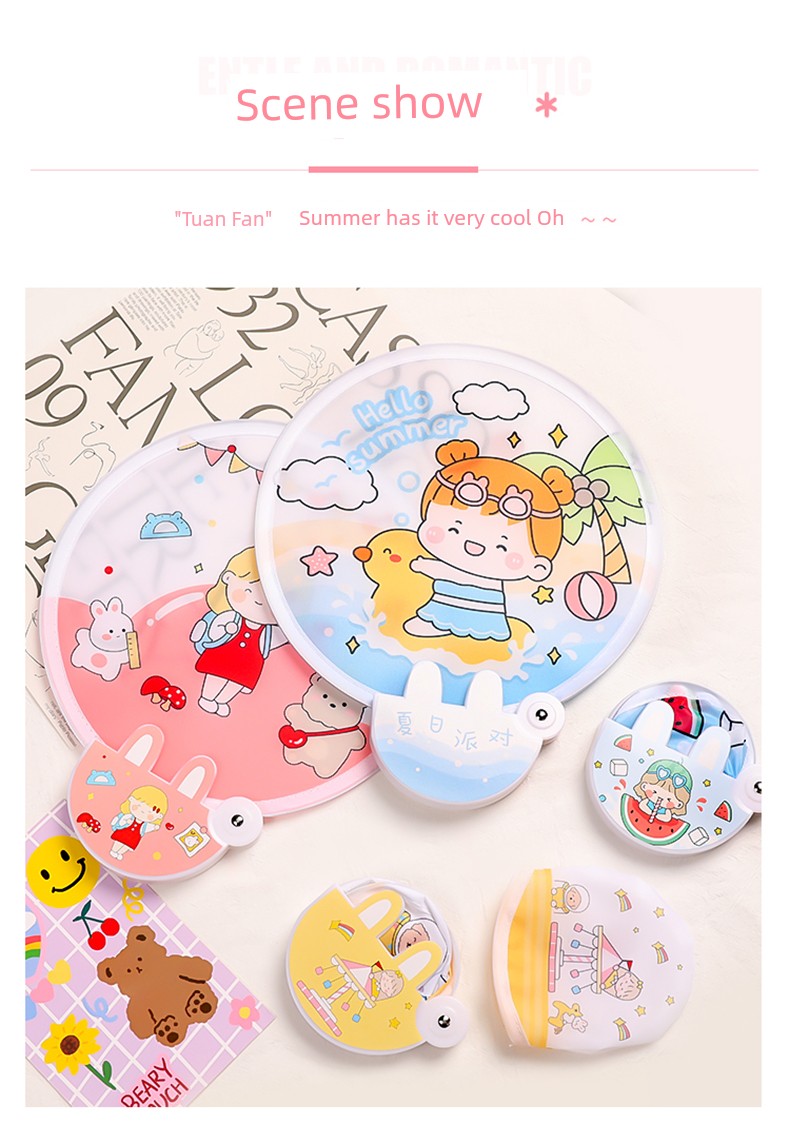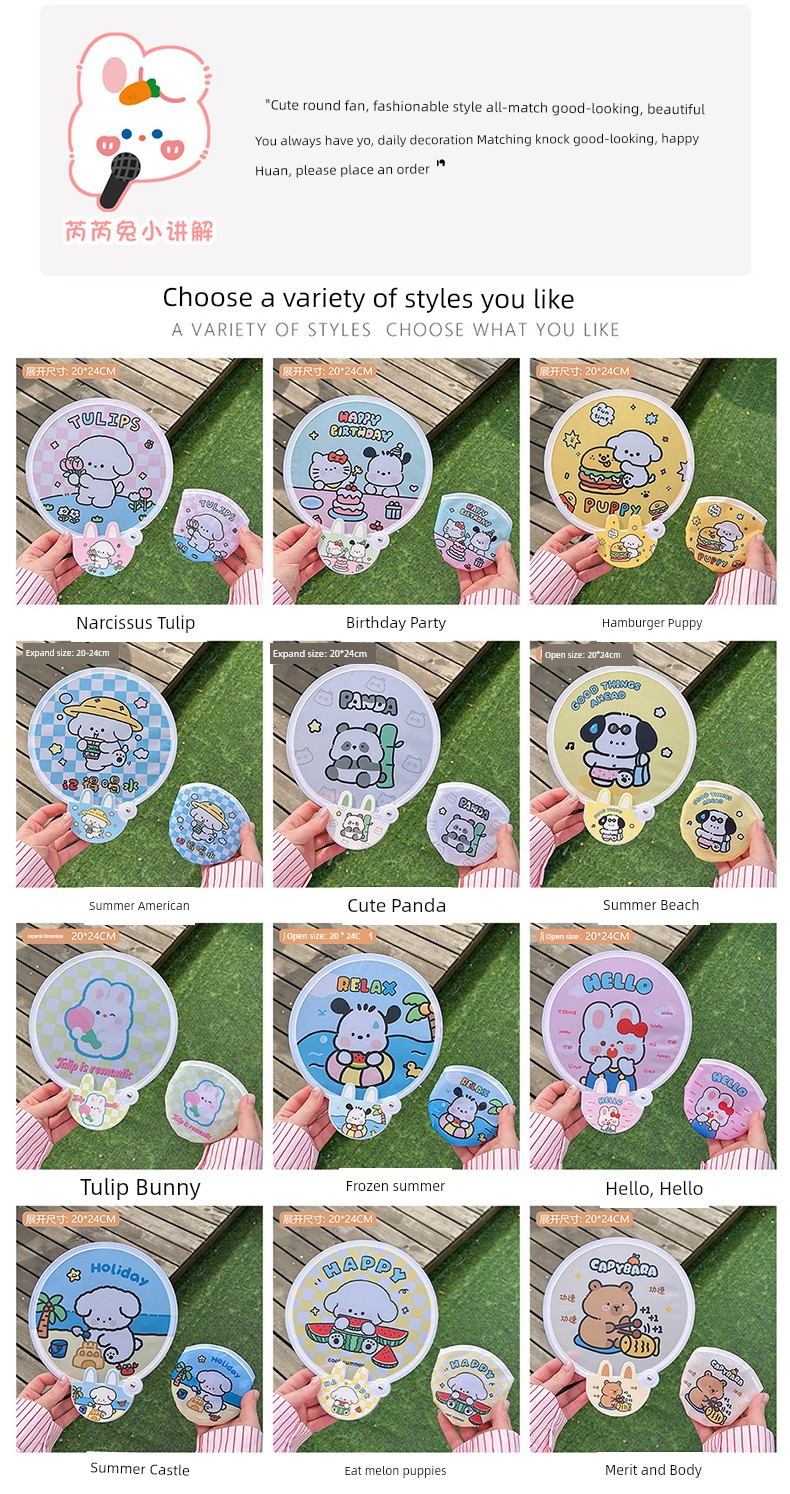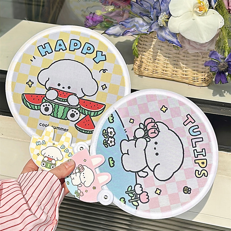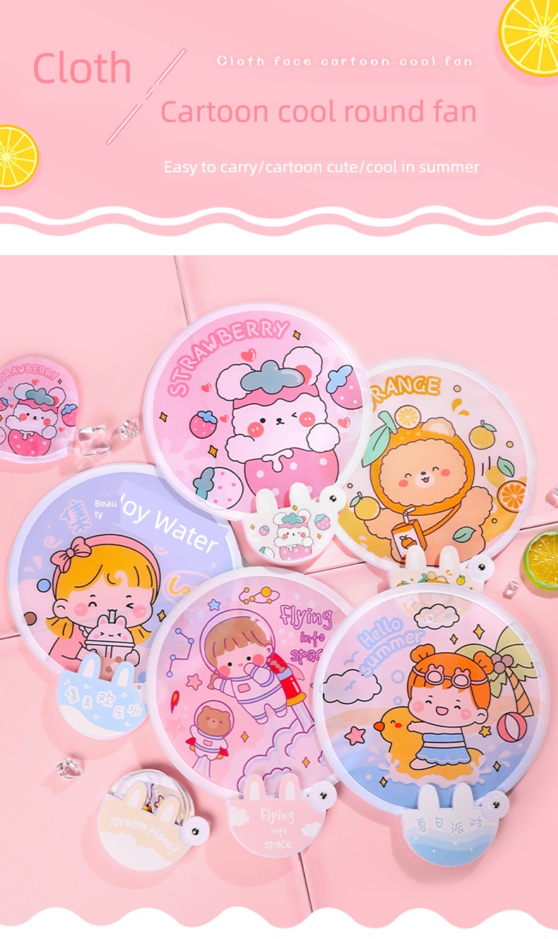 Cute Circular Fan Folding Fan Summer Mini Cloth Pocket Hand Fan Kids Student Portable Portable Small round Fan