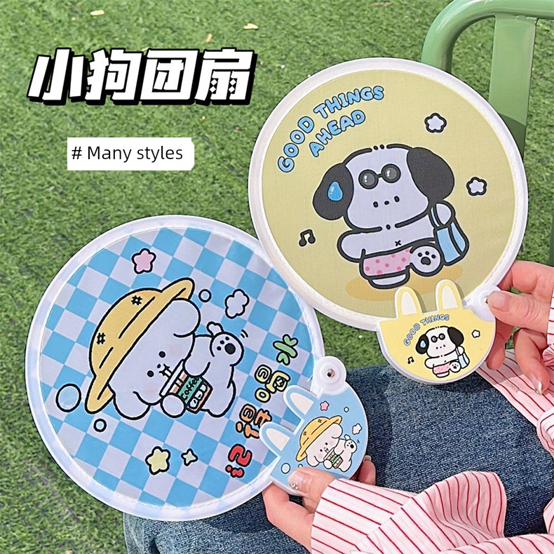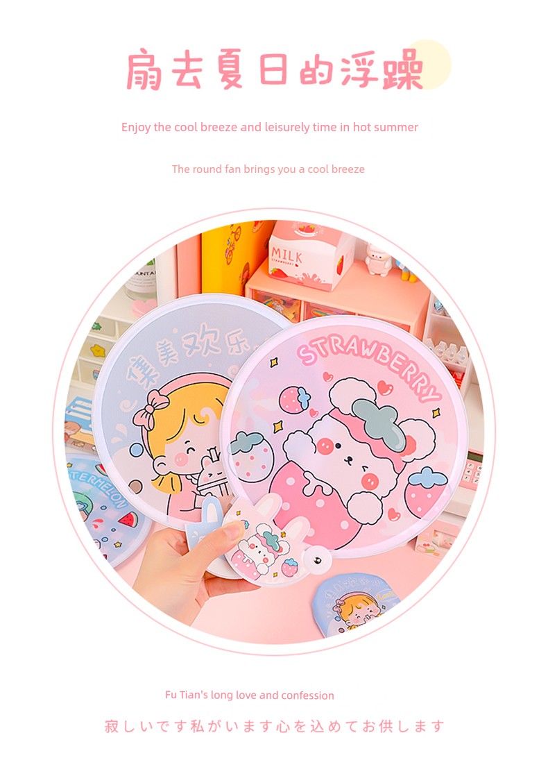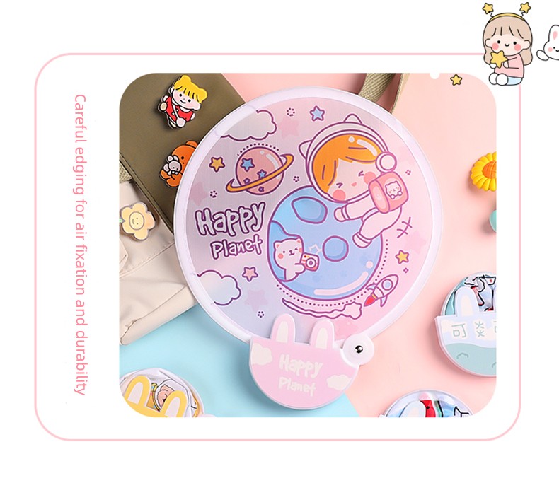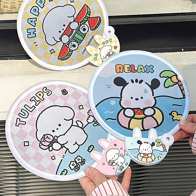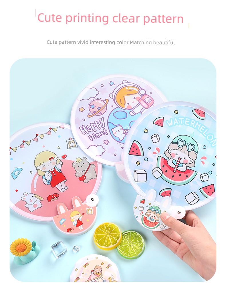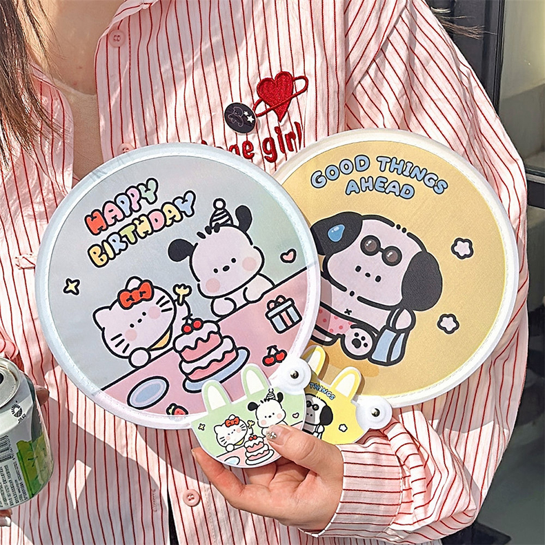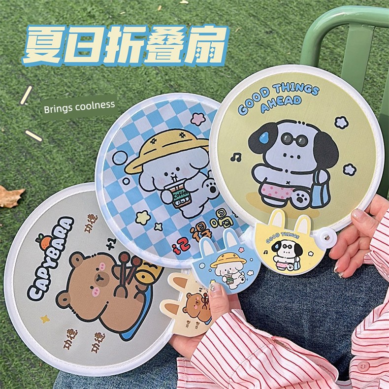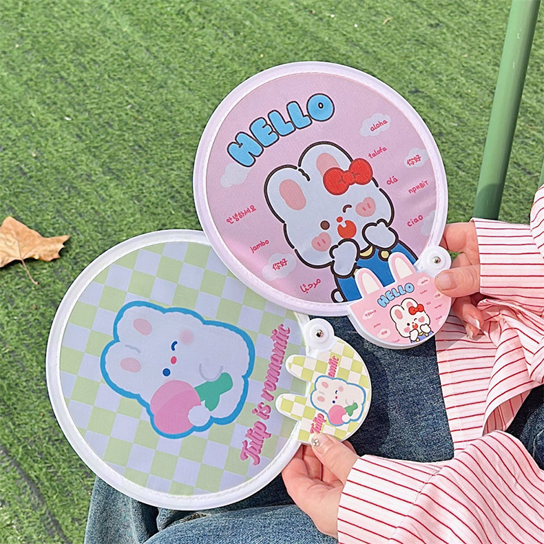 Cute Circular Fan Folding Fan Summer Mini Cloth Pocket Hand Fan Kids Student Portable Portable Small round Fan
