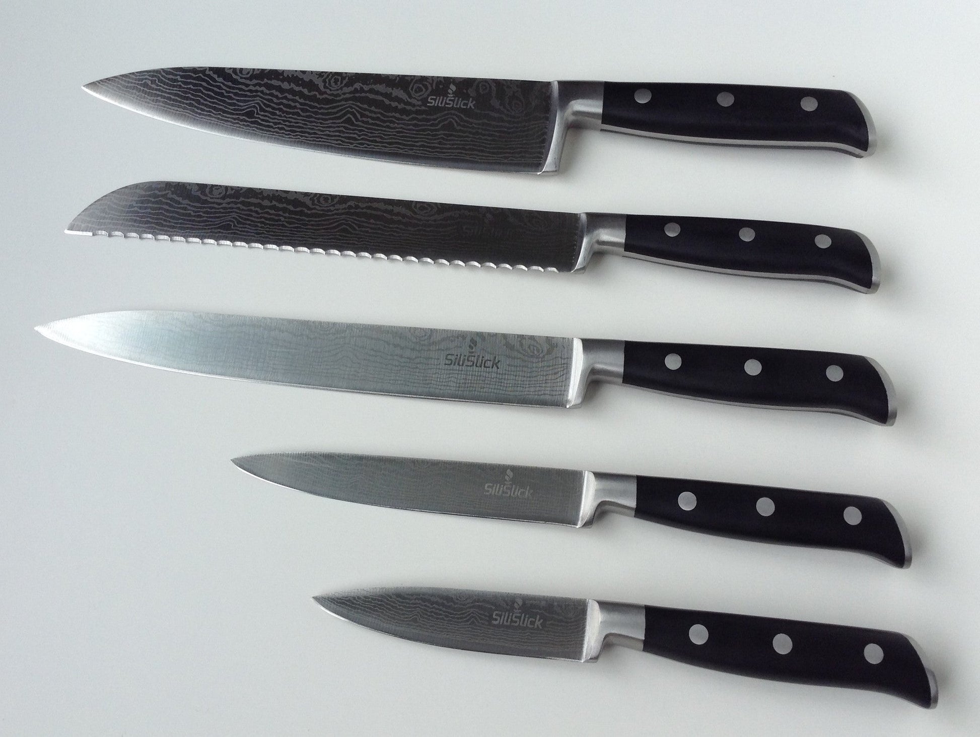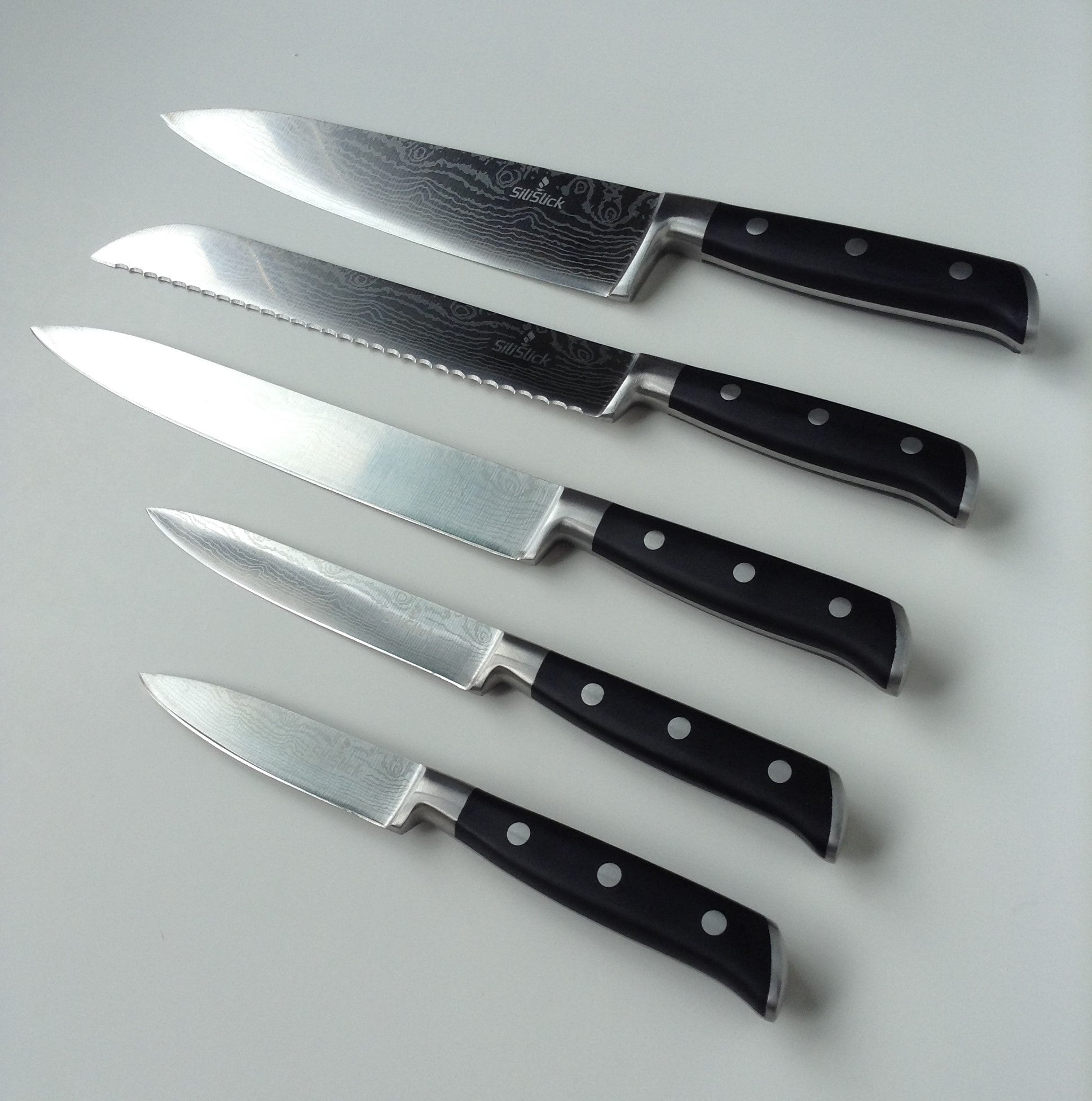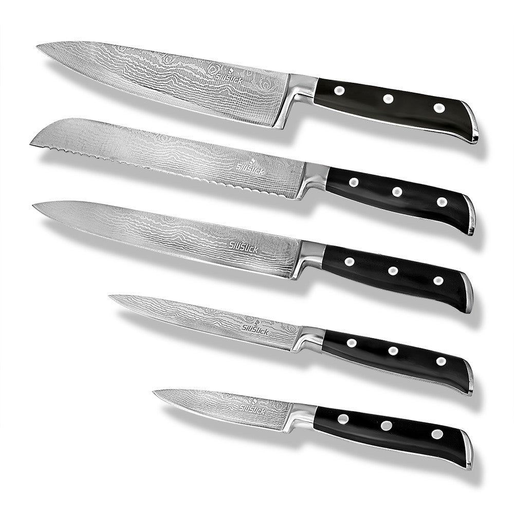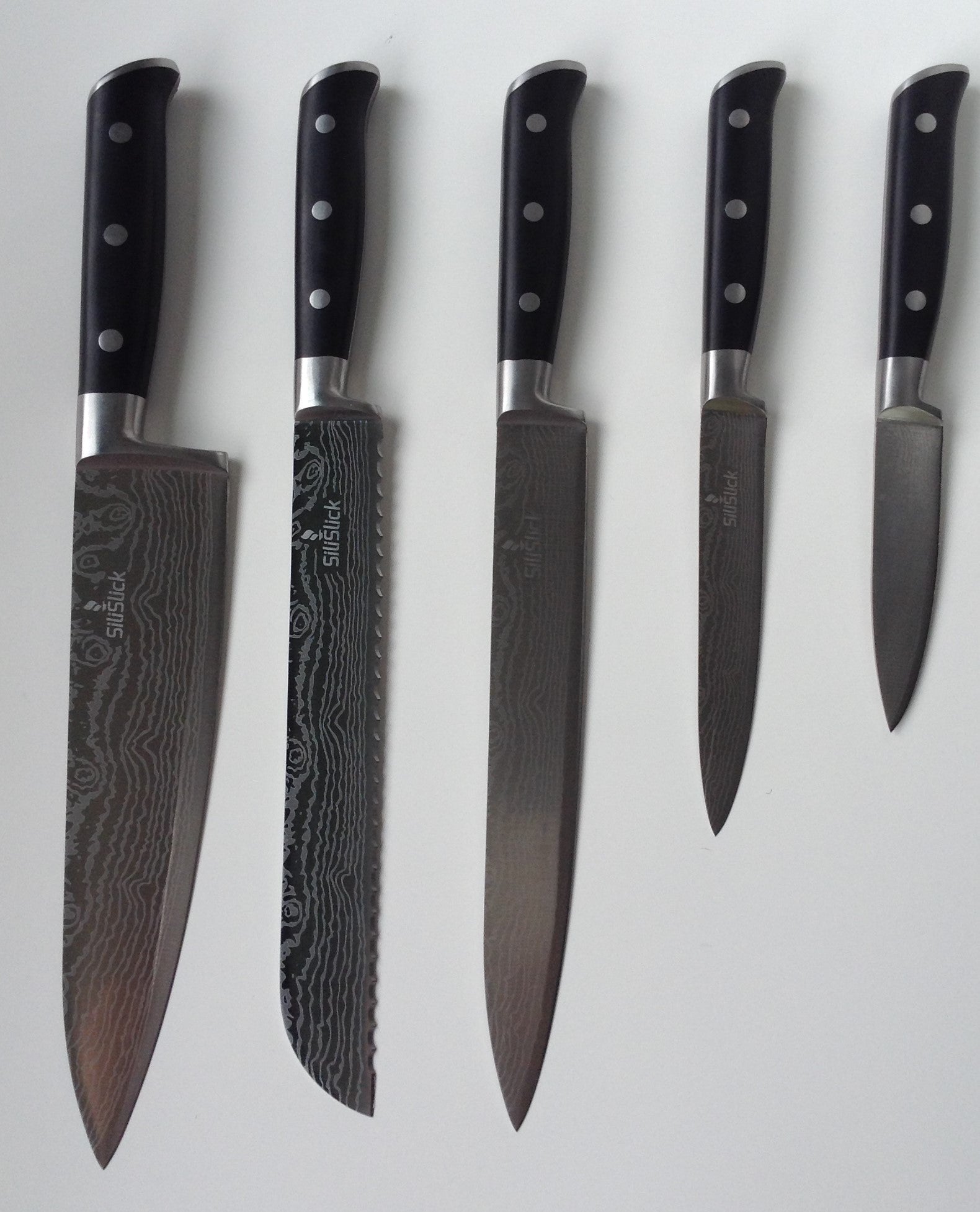 More About SiliSlick Damascus Etched Full Tang 5 Pcs Knife Set: