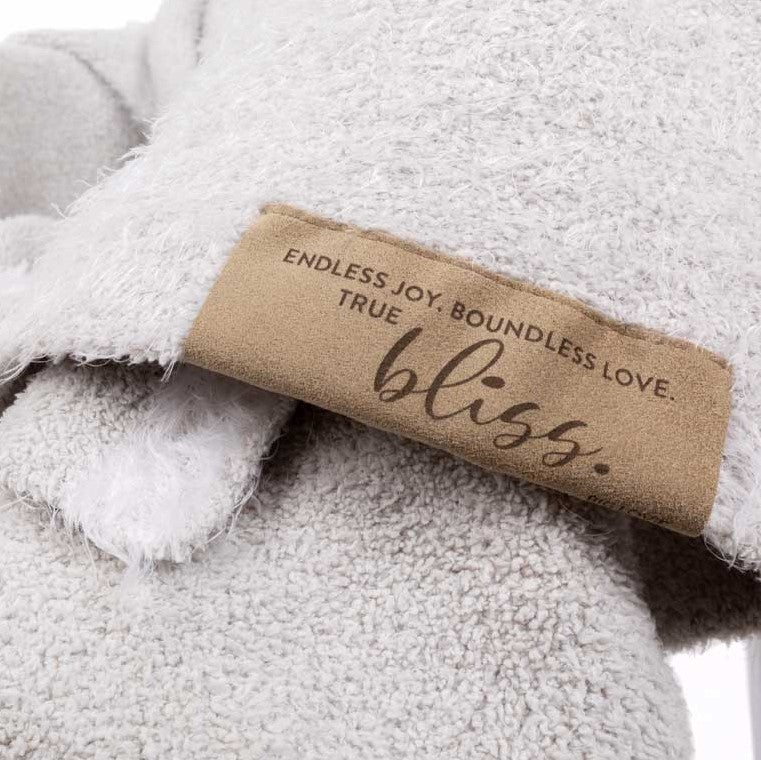 The light gray blanket has a gorgeous custom script "Infinite LOVE" that pops off the blanket in white, feathered fluff. Knitted with our signature micro-chenille and feather yarn combo, making it the silkiest, softest blanket perfect for wrapping up in love.