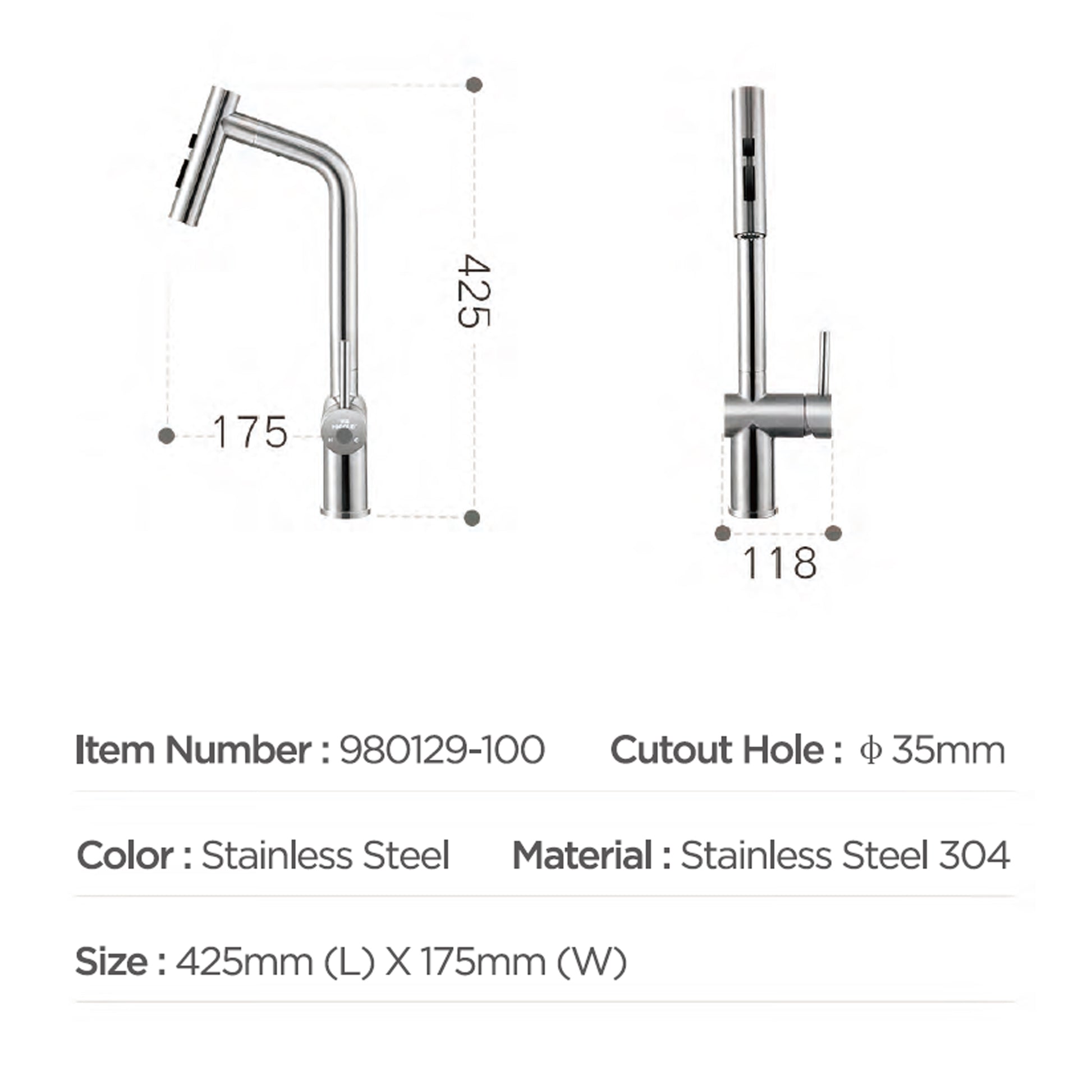 For an extra comfortable feeling of water, Higold BN1.0 pull-out sprayer faucet enriches the air, produces fuller, lighter, softer droplets that reduce splash (AirPower). The BN1.0 design enhances the modern feel with an organic flow shape, cylindrical shape, slim body and precise edges. Dynamic upright handle allows easy adjustment of water volume and temperature.