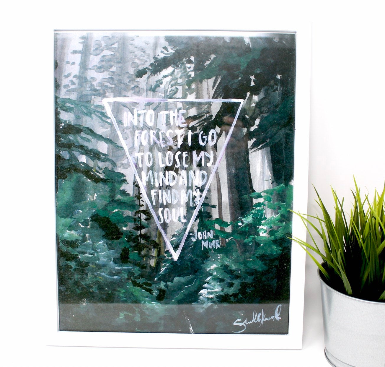 Into The Forest I Go- John Muir Art Print, 11x14in, Inspirational Quote, Home Decor, Wall Artwork