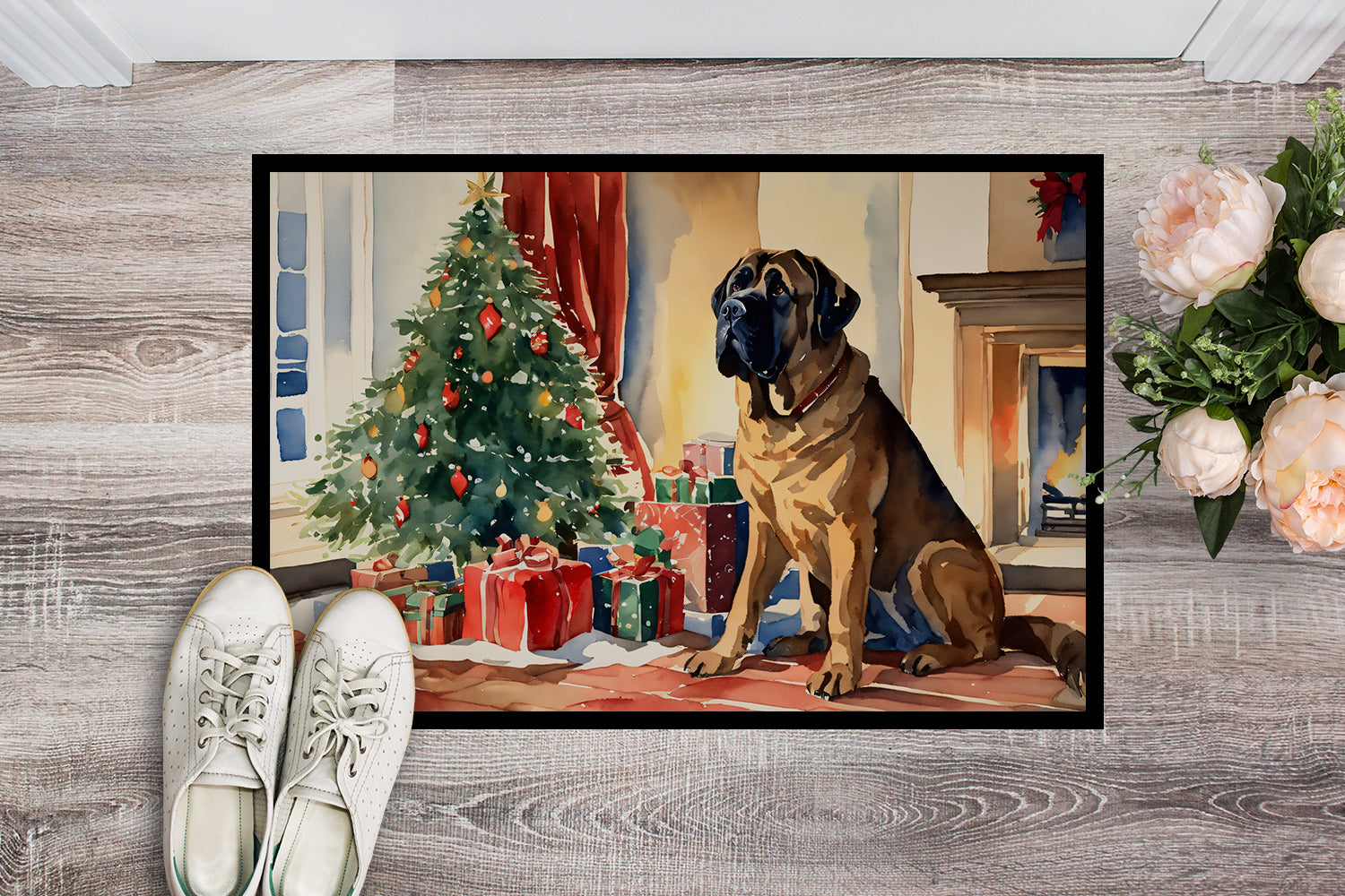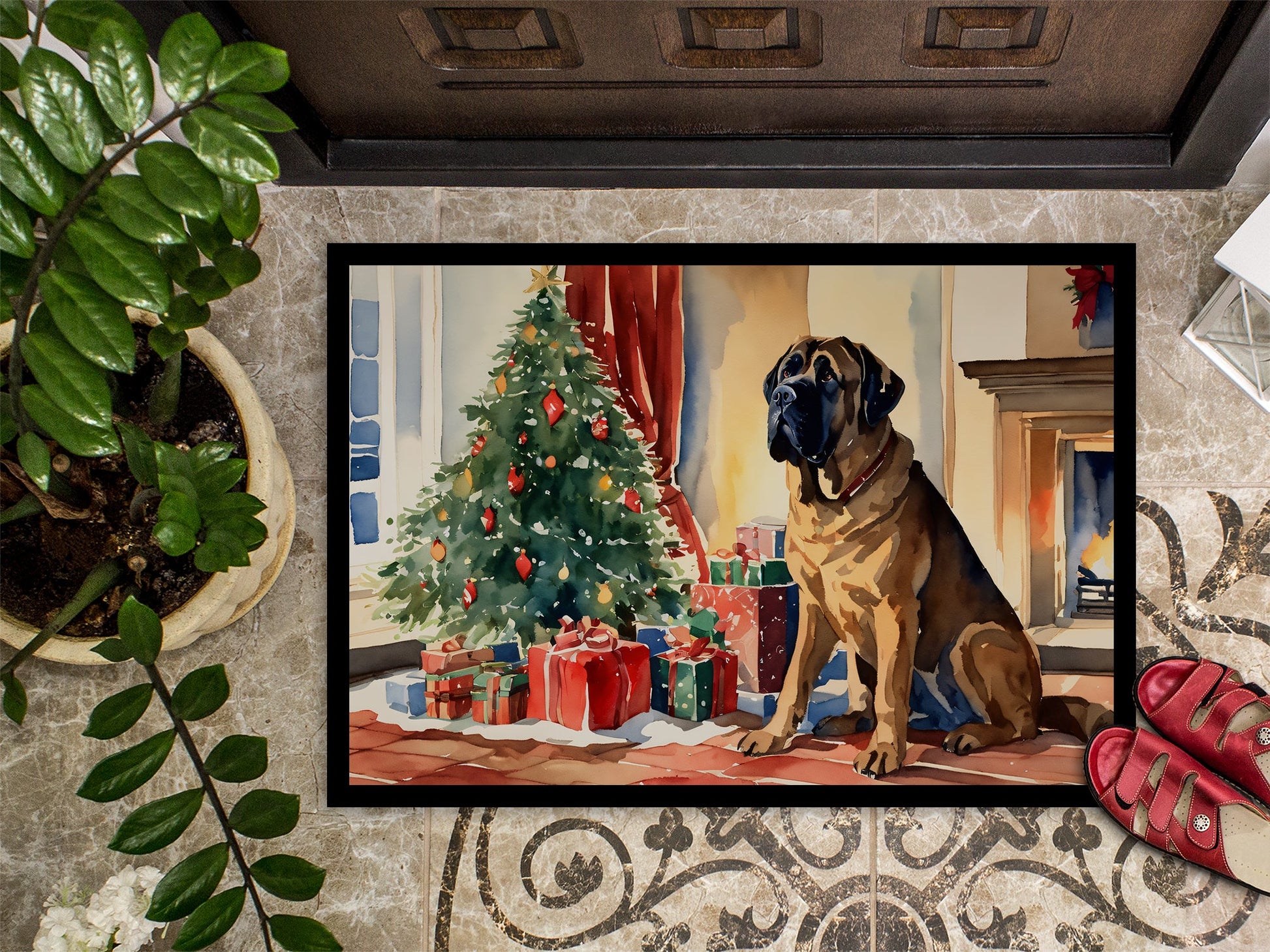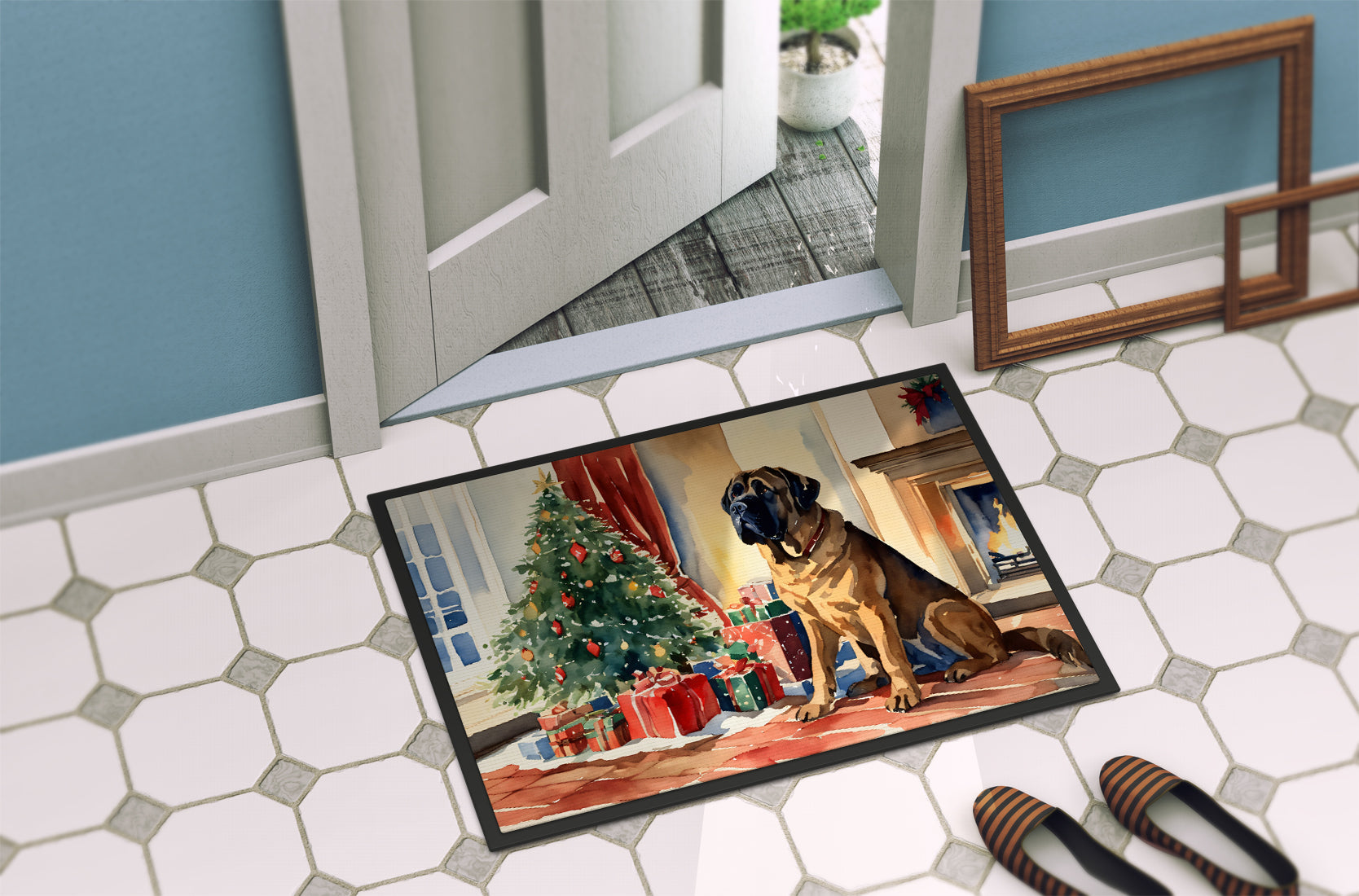 Doormat featuring breed specific Mastiff artwork. Celebrate Christmas with this Christmas Doormat. Welcome your guests in style with our Artwork Door Mat, designed to withstand almost any weather condition. This mat, measuring approximately 18 by 27 inches, is held together by durable black binding tape. Its top layer, composed of polyester felt, is dyed with the eye-catching image you see on the mat. A few layers below provide the mat with stability, while its rubber bottom is stamped to help prevent slipping and ensures safety. Our mat works wonderfully as both an indoor or outdoor door mat. For cleaning, simply hose it off with water or use a power washer - no need for any cleaner that produces suds. Avoid scrubbing with a brush, instead, opt for the vacuum on floor setting. Designed manufactured and printed in the USA, this mat is a perfect addition to your porch, outdoor kitchen, entryway, or any indoor space. Its unique design makes it a charming decorative rug that greets your guests and adds a stylish touch to your home decor.