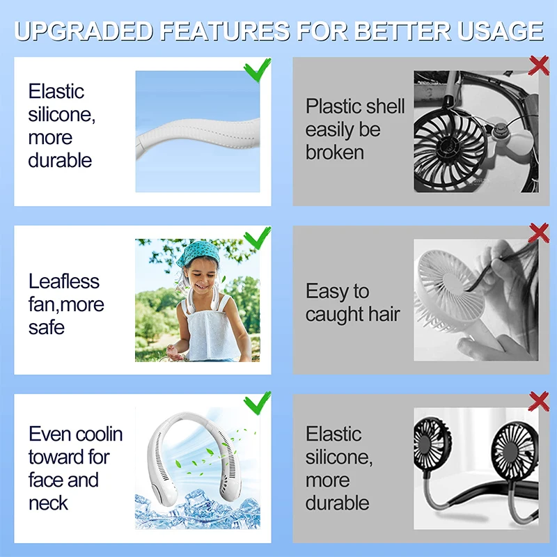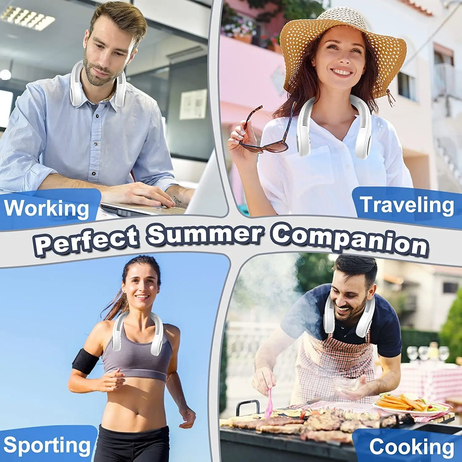 Mini Electric Bladeless USB Rechargeable Fan Neck Strap Fan Portable Hanging Neck Fan for Outdoor