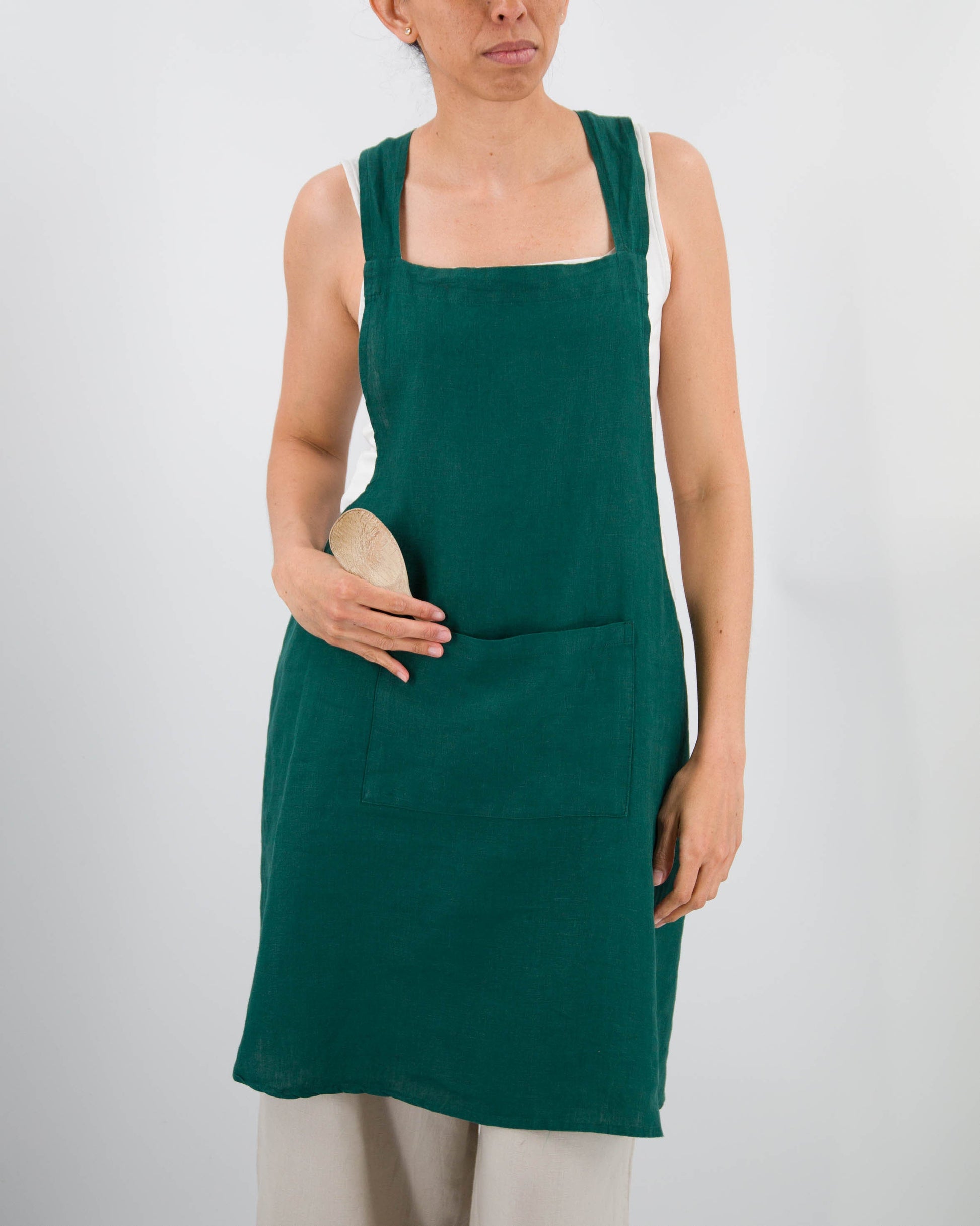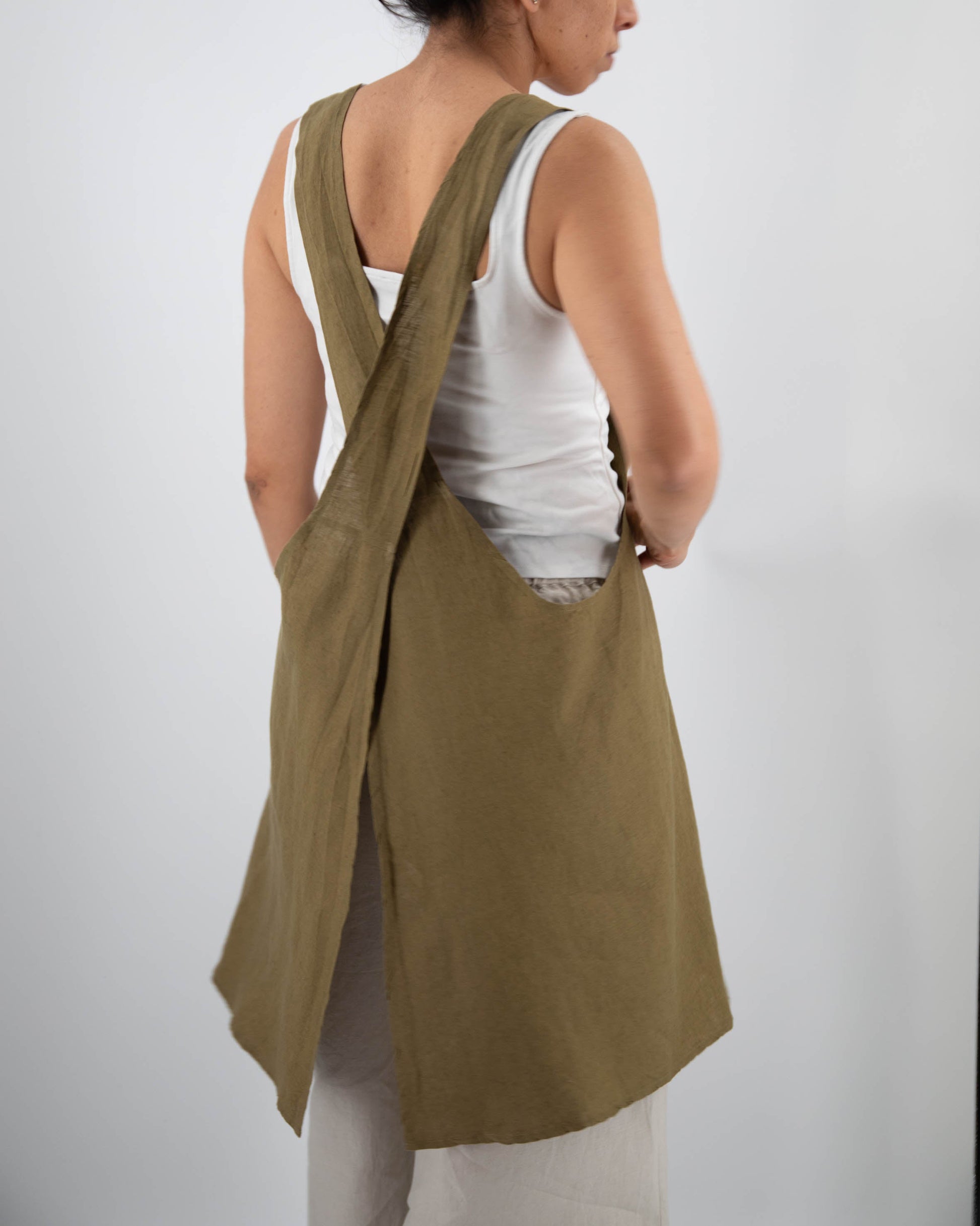 No more fumbling with straps. Our Japanese-style Nishi apron is designed for comfort and ease of use. Made of 100% linen so super light weight and comfortable even when used for a 6-hour marathon. One large front pocket for your phone, cooking tools, etc. Slip on over your head and get to cooking.
