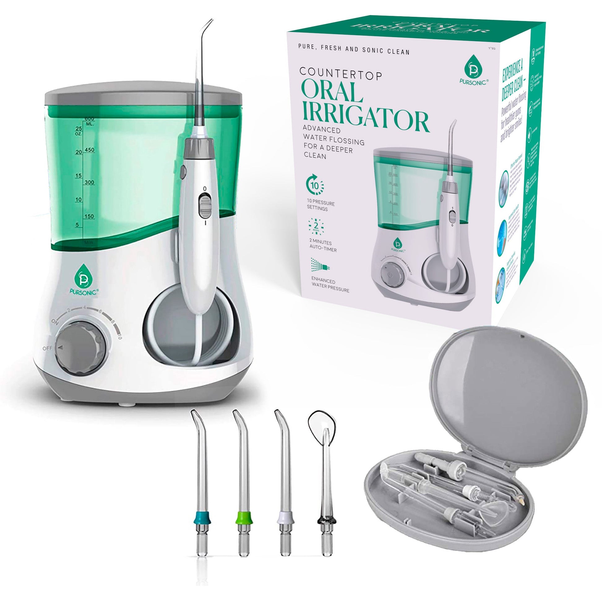 Pursonic OI-200 Professional Counter Top Oral Irrigator Water Flosser with 3 Nozzles Plus a Bonus Tongue Scraper