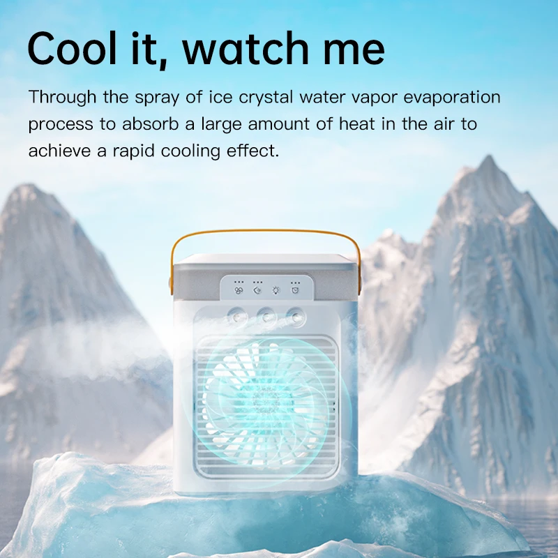 Small Desk Fan, Personal Fan, USB Powered Portable Fan, 3 Speeds LED Light and Night Light Strong Airflow Mini Fan Table Fan