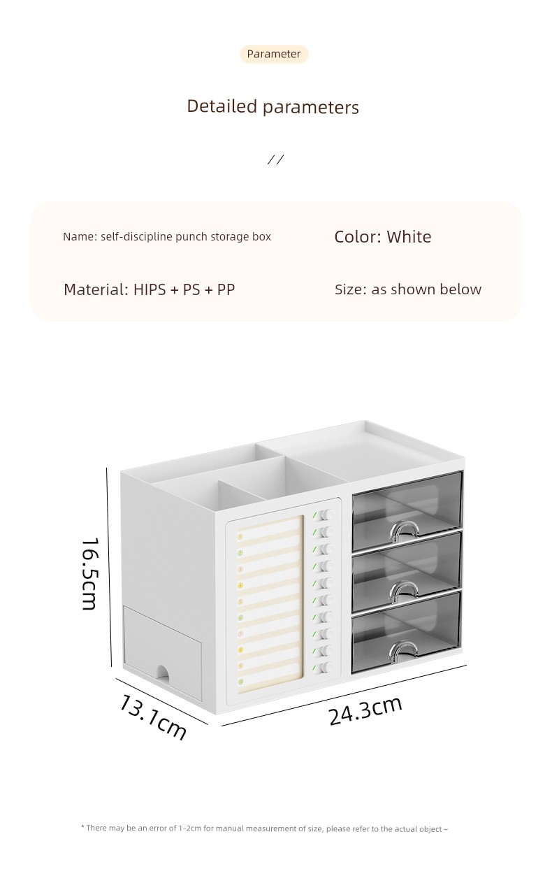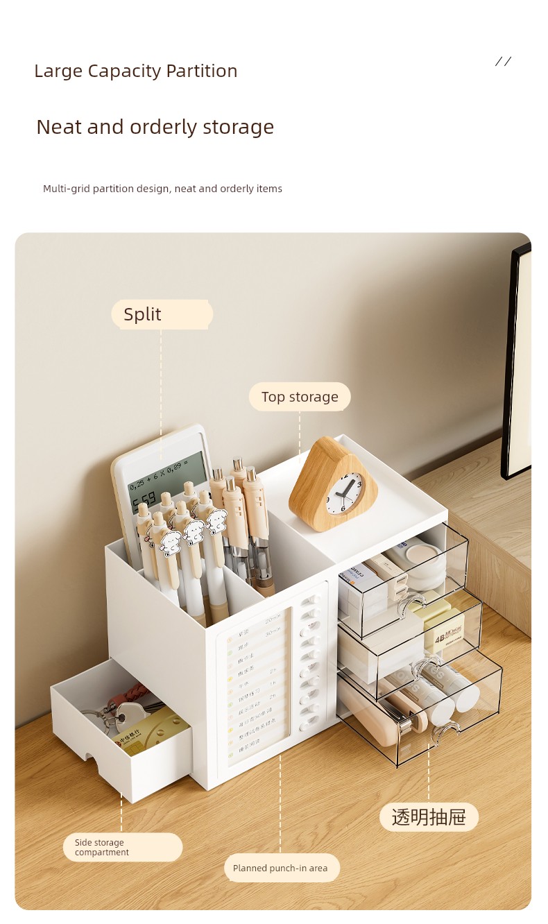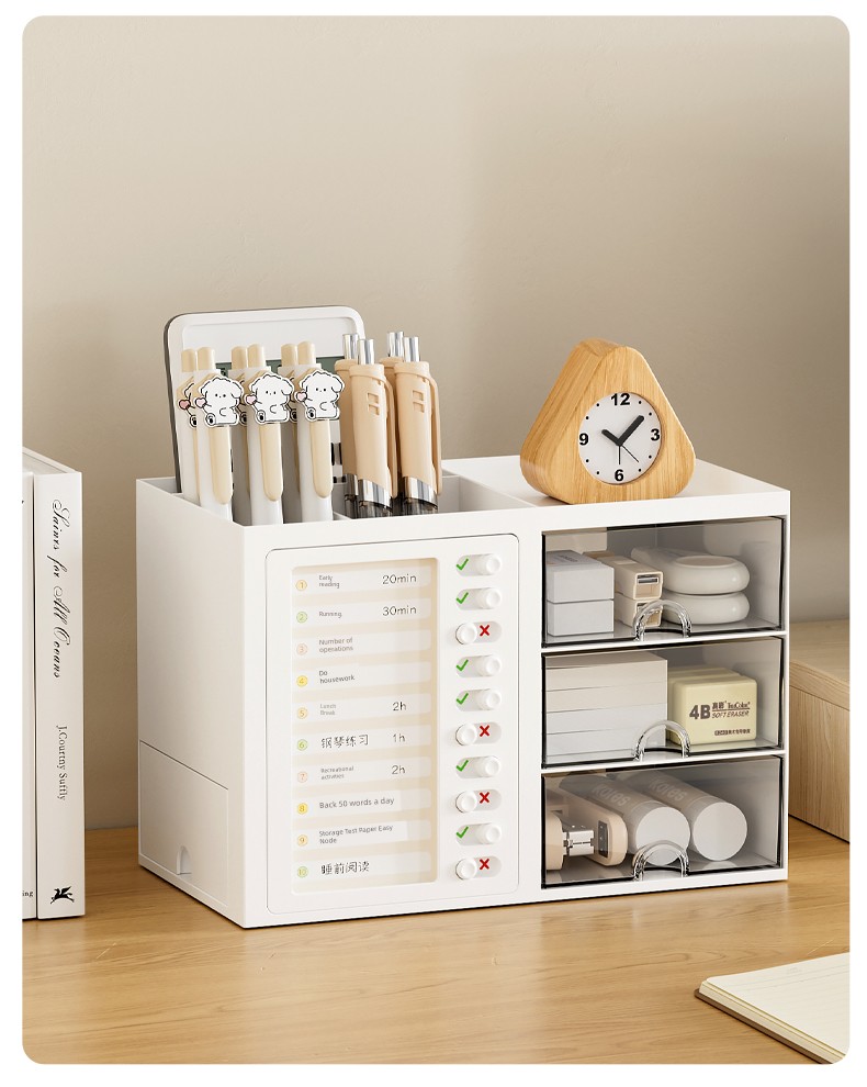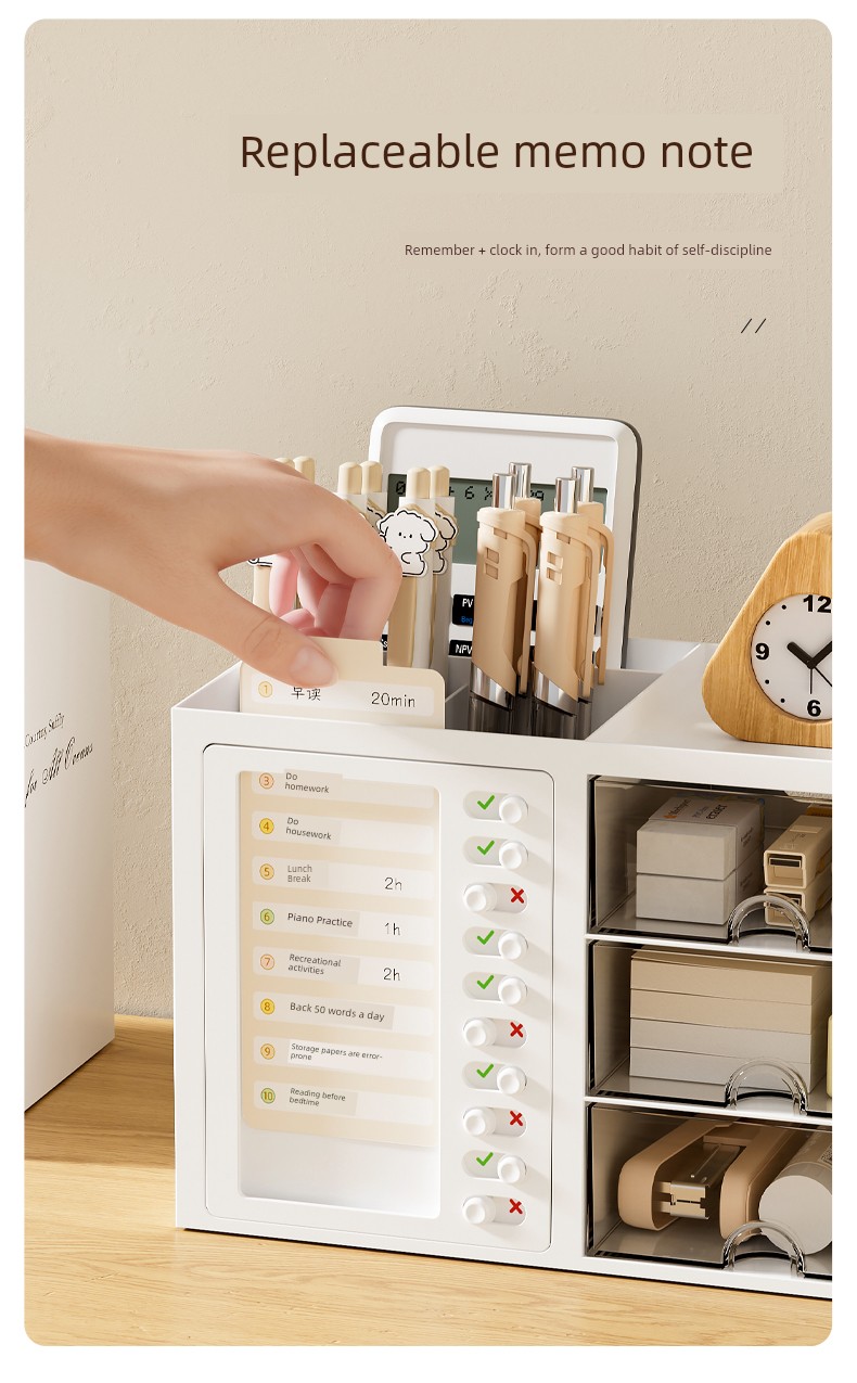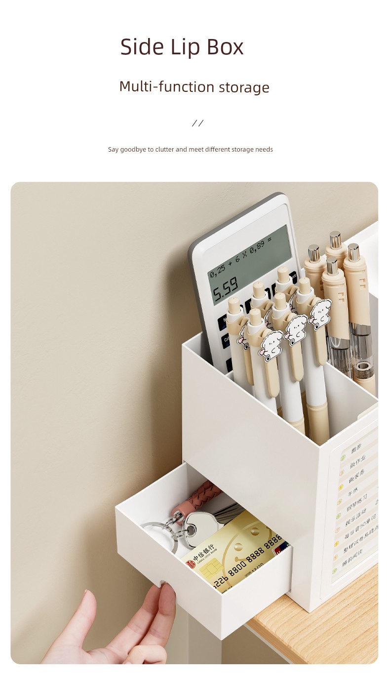 β¨ Keep It Organized! β¨ What is it - Meet the ultimate Student Desk Organizer, designed for primary school students to enhance their self-discipline! This stylish storage box features a practical drawer and compartments for all your school supplies, from pens to notepads. π Why do you need it: - Promotes self-discipline by encouraging organization. - Reduces clutter and keeps your workspace tidy. - Ideal for students, helping them manage tools efficiently. - Perfect fit for any office desk or studying environment. β€οΈ Why you love it: - Sleek, modern design that complements any decor. - Durable materials ensure long-lasting use. - Versatile functionality for both students and adults. - Effortlessly stores all your essentials at arm's reach. π οΈ How to use it: Simply place all your stationery items in the compartments and utilize the drawer for bigger items! It's designed to fit seamlessly on your desk, maximizing your space. β