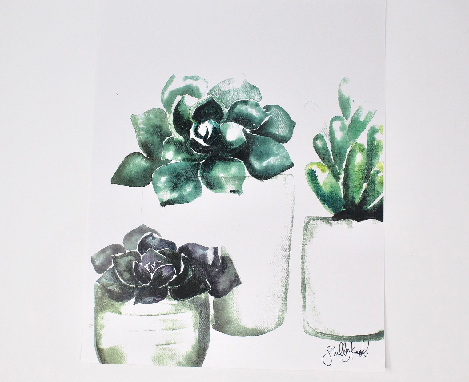Simple and elegant acrylic painting of succulents in vases. This basic succulent print is great wall art for any gallery wall! Collect all four of my succulent prints for a delightful collection.