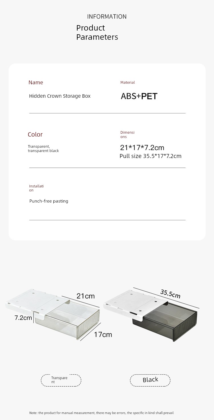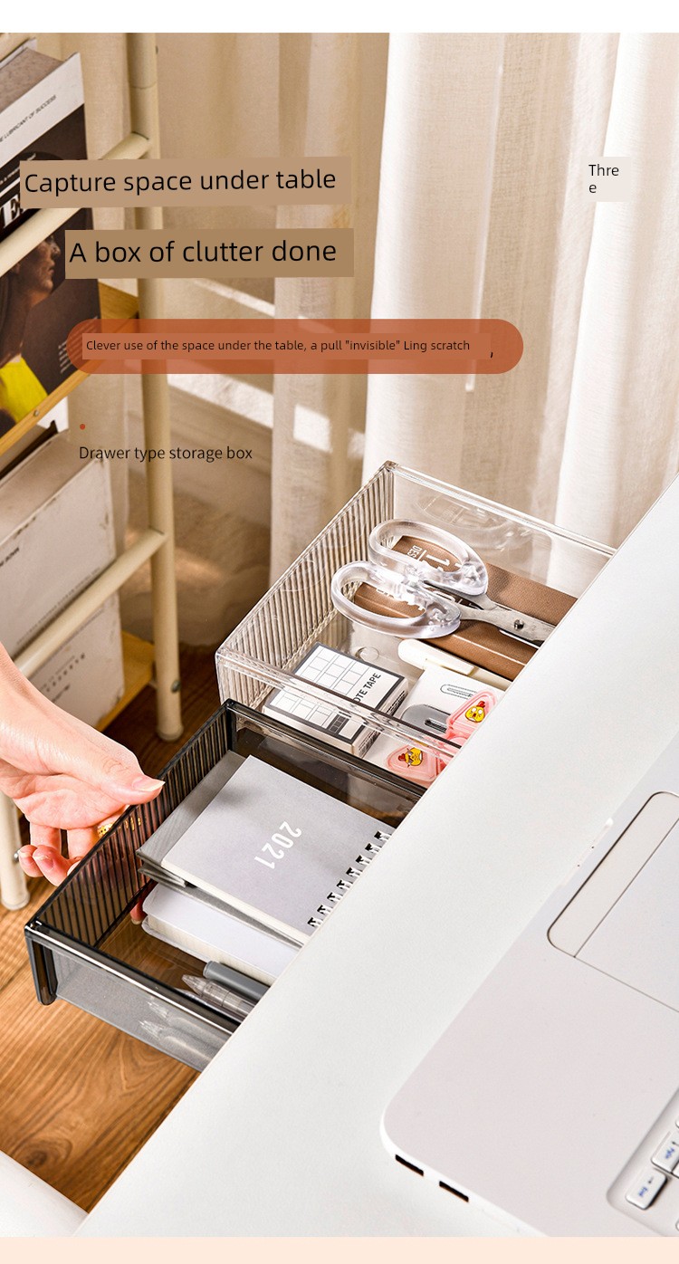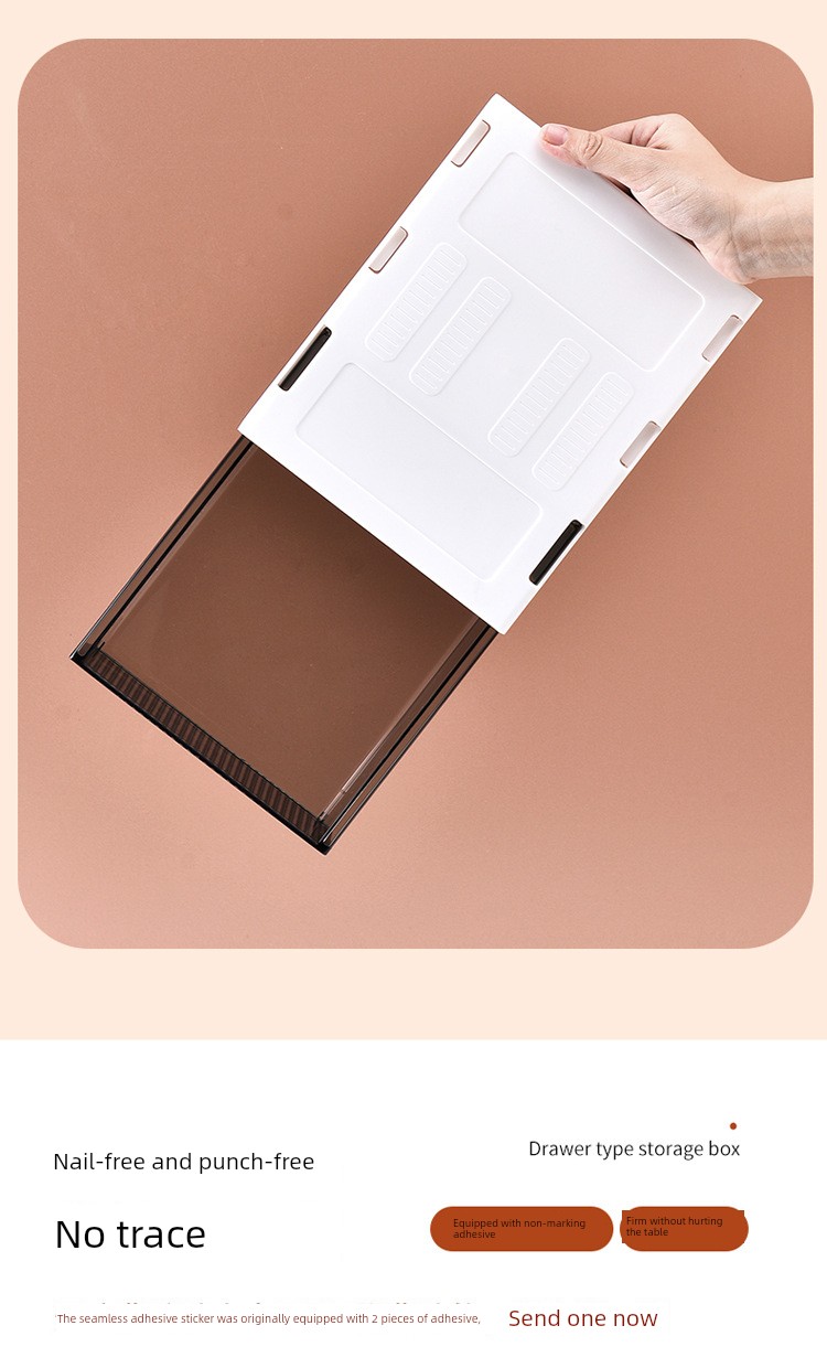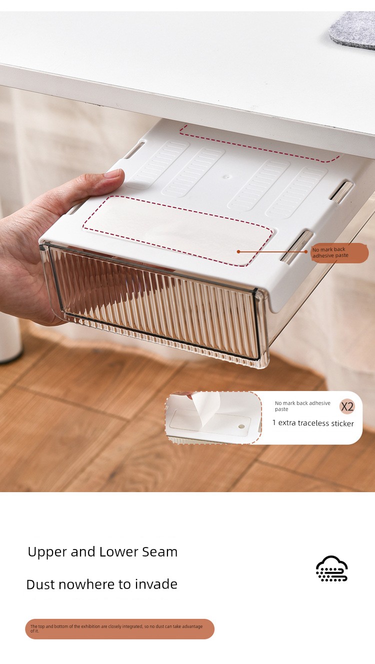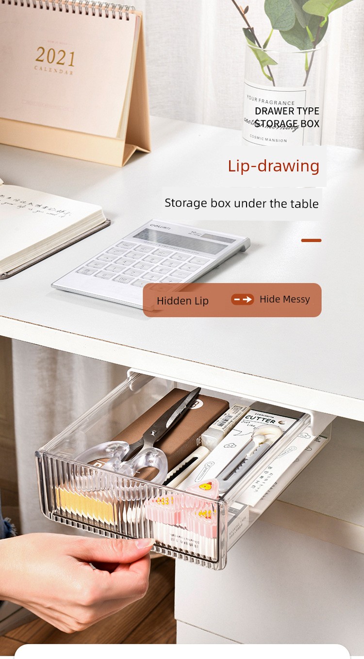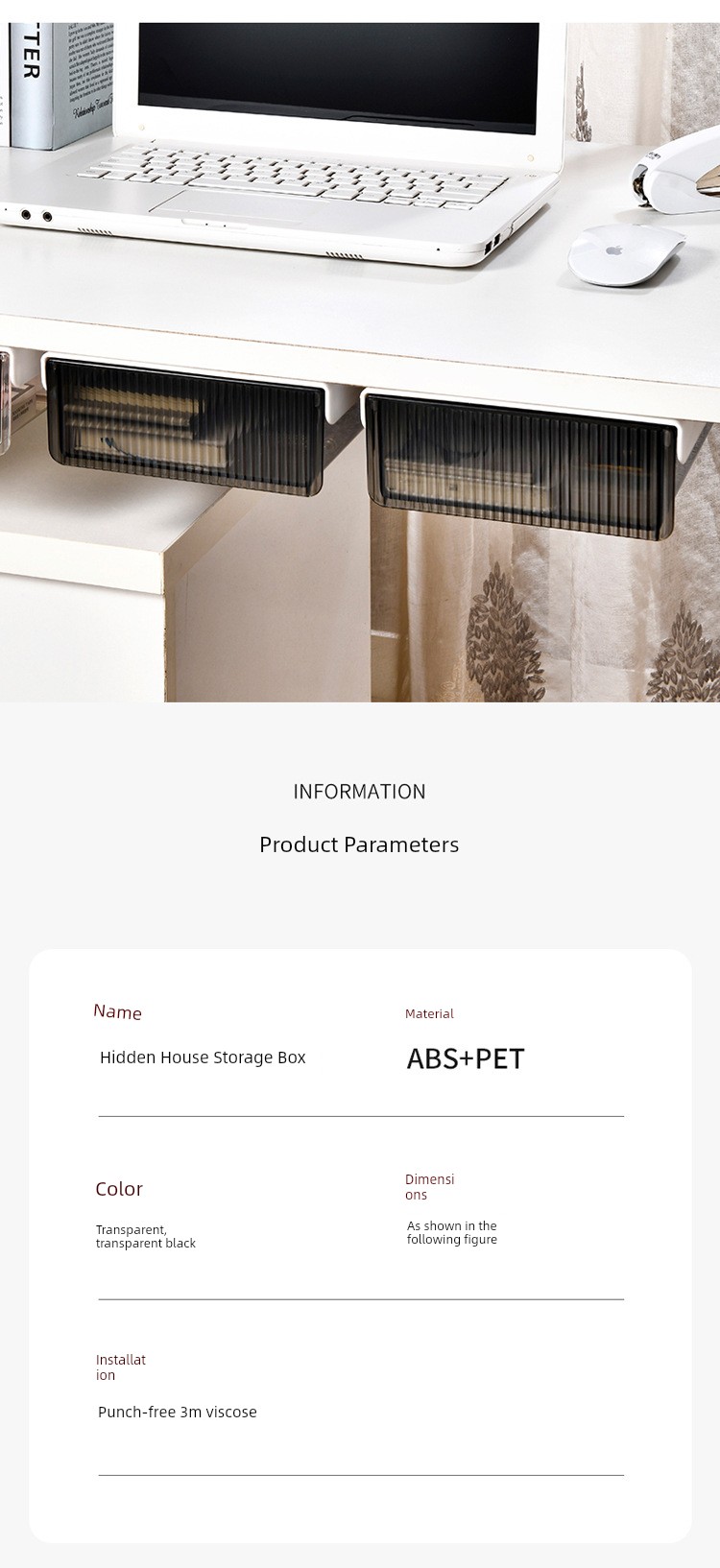 Keep your workspace organized! β¨ποΈ What it is β Our under desk punch-free drawer-type storage box is the perfect solution for a clutter-free office. This sleek hidden pen holder and sundries organizer is designed to maximize your space while keeping all your essential stationery within reach.π― Why you need it: - Prevents clutter and disorganization in your workspace. - Easy accessibility for all your office supplies. - Punch-free installation means no damage to your desk. - Premium design fits seamlessly under any desk. - Keep essentials like pens, scissors, and notepads at hand for ultimate productivity.β€οΈ Why youβll love it: - Convenient solution for on-the-go organization. - Sturdy construction ensures it holds all your desk essentials without sagging. - Versatile design complements any office dΓ©cor. - Great for both home and professional environments.π οΈ How to use it: Simply peel and stick to any clean, flat surface under your desk. Load it with your favorite office supplies, and enjoy a clutter-free workspace! π Guarantee: Enjoy a limited-time offer on this best seller! Transform your workspace today with our exclusive under desk storage box and experience essential organization at your fingertips!